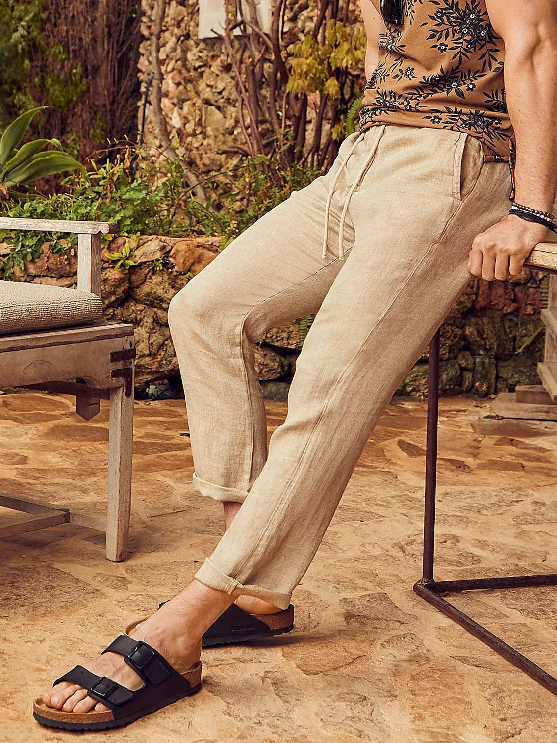 Men's Linen Drawstring Elastic Waist Plain Shorts