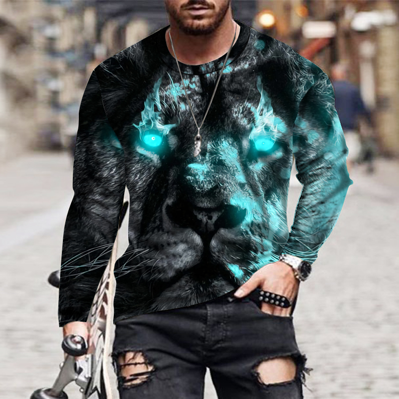 summer t-shirt european and american hip-hop series digital 3d printing men's street long-sleeved sports t-shirt top