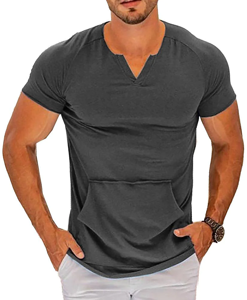 Men's Henley Shirt Tee Top Plain V Neck Street Vacation Short Sleeves Clothing Apparel Fashion Designer Basic