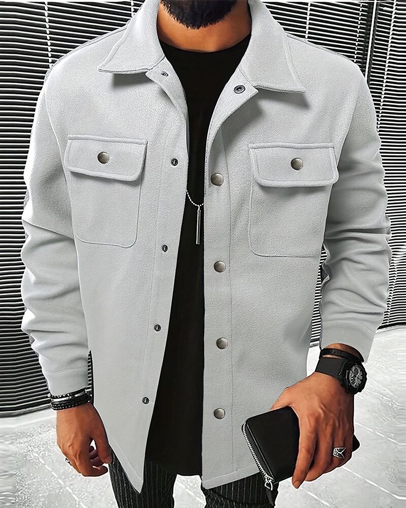 Men's Shirt Jacket Casual Jacket Vacation Daily Breathable Pocket Spring Fall Plain Fashion Classic Lapel Regular Dark Gray Black Navy Blue Khaki Light Grey Jacket
