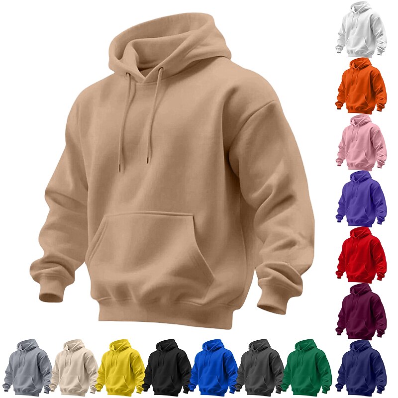 Men's Hoodie Pullover Hoodie Sweatshirt Apricot Black White Yellow Pink Hooded Plain Kangaroo Pocket Sports & Outdoor Casual Daily Streetwear Cool Sportswear All Seasons Clothing Apparel Hoodies
