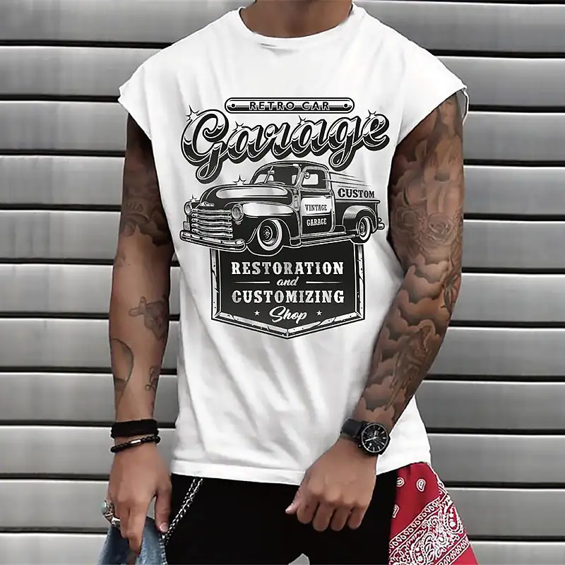 Men's Cheetah Print Crew Neck Casual Sleeveless Undershirt