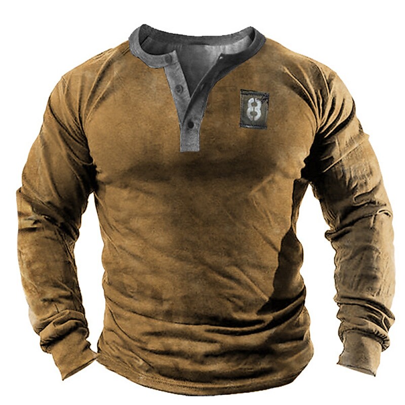 Men's Henley Shirt Letter Henley Khaki Casual Daily Long Sleeve Print Clothing Apparel Cool Casual