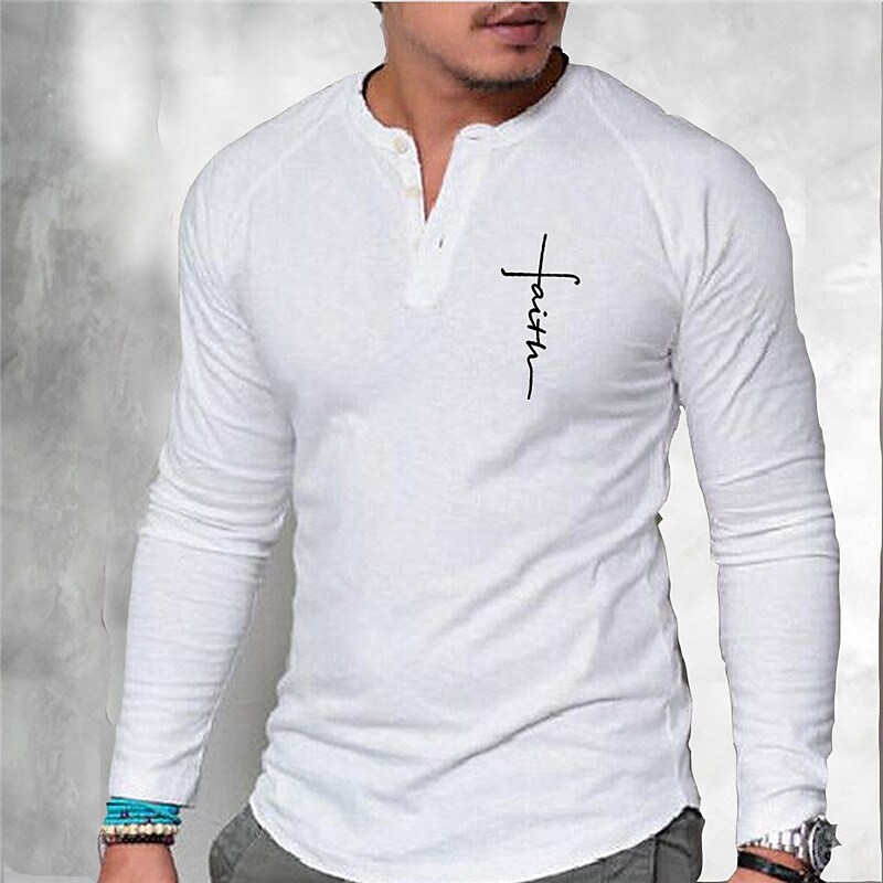 Men's Graphic Letter Button-Down Outdoor Casual Long SleeveHenley Shirt