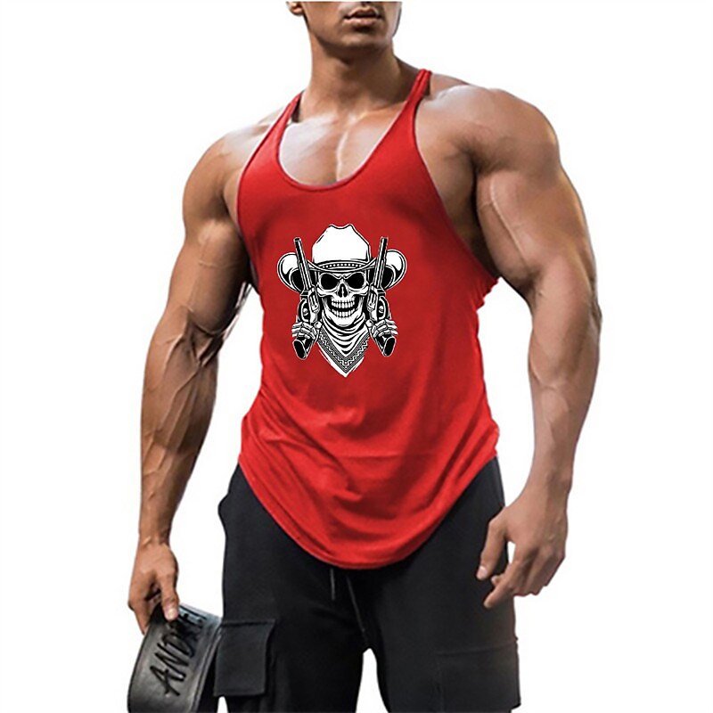 Men's Tank Top Vest Hot Stamping Graphic Prints Skull Plus Size Crew Neck Daily Sports Print Sleeveless Tops Fashion Classic Designer Hawaiian Black Gray Red