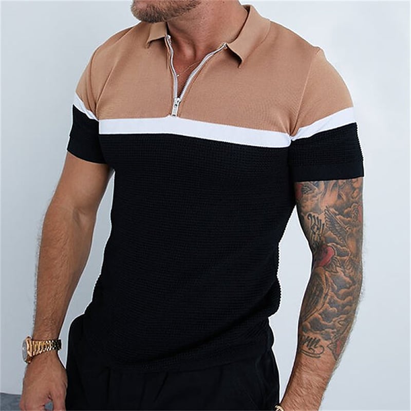 Men's Golf Shirt Color Block Turndown Street Casual Zipper Short Sleeve Tops Cotton Casual Fashion Breathable Comfortable Black / Summer
