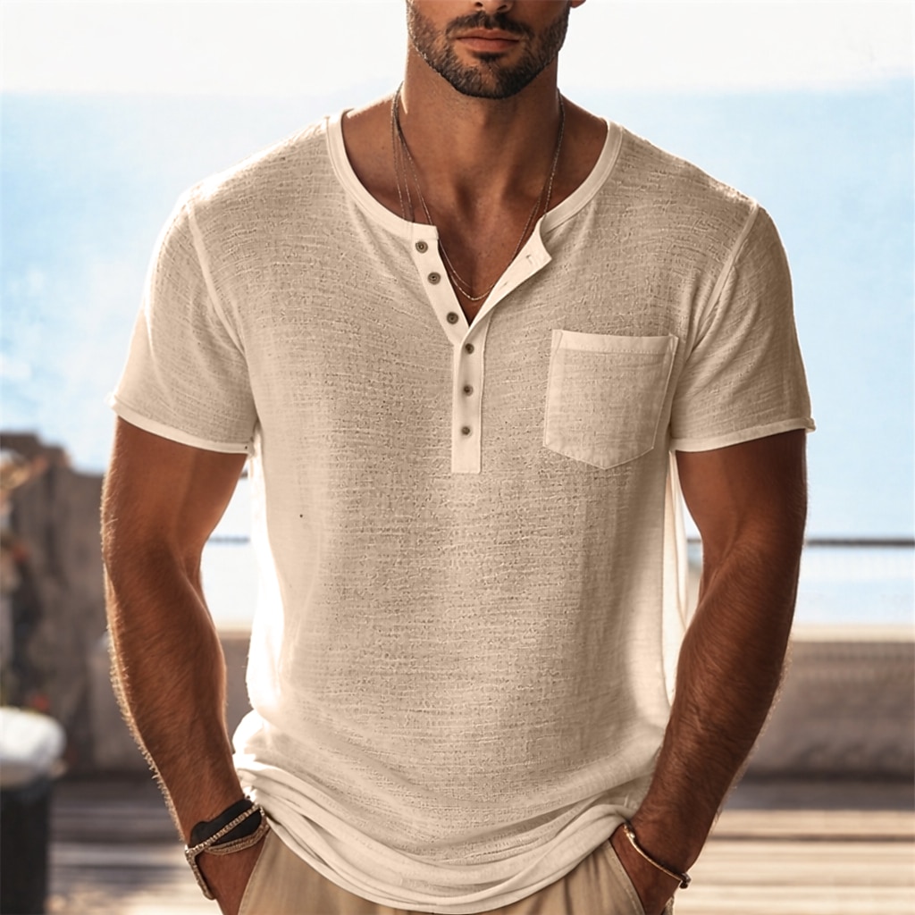Men's HenleyT Shirt Knit Tee Tee Top Short Sleeve Henley Summer Solid Color Textured Fashion Lightweight Basic Mesh Knitted Casual Vacation Street Black Purple Green Top Tee for Men