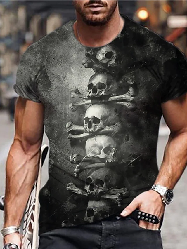 Men's Unisex T shirt Tee Hot Stamping Graphic Prints Skull Letter Crew Neck Street Daily Print Short Sleeve Tops Casual Designer Big and Tall Sports Black Dark Gray Navy Blue