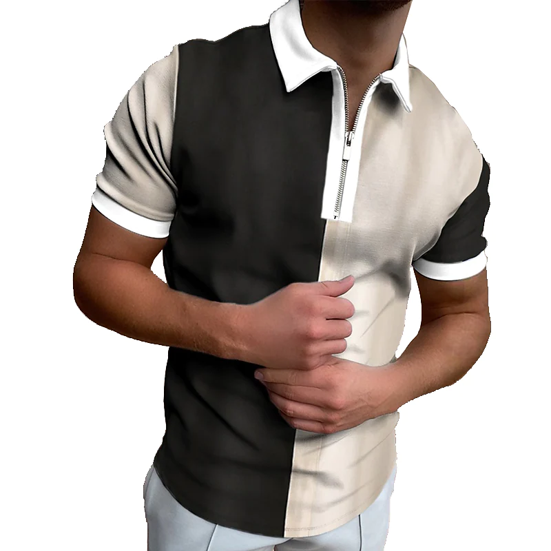 Men's Golf Shirt Color Block Collar Street Casual Zipper Print Short Sleeve Tops Casual Fashion Breathable Black / White / Summer