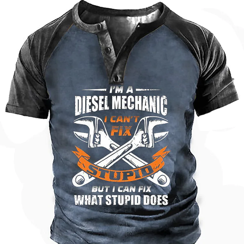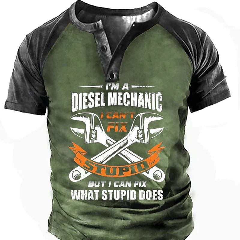 Men's Waffle Graphic Letter 3D Print Button Short Sleeve Henley Shirt