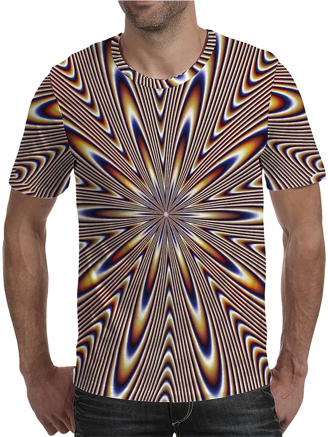 Men's Henley Shirt Tee Graphic Striped Henley 3D Print Outdoor Casual Short Sleeve Button-Down Print Clothing Apparel Fashion Designer Comfortable