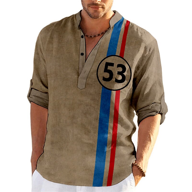 Letter Graphic Prints Fashion Basic Casual Men's Henley Shirt Graphic Tee Vintage Shirt Outdoor Daily Going out T shirt Blue Brown Green Long Sleeve Henley Shirt Spring & Summer Clothing Apparel S M