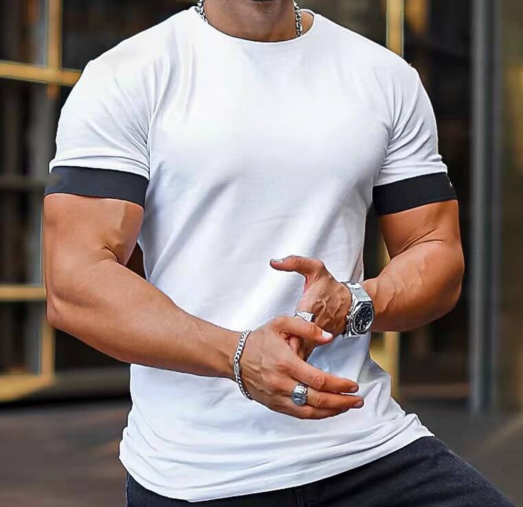 Men's T shirt Tee Solid Color Crew Neck Vacation Work Tops Casual White