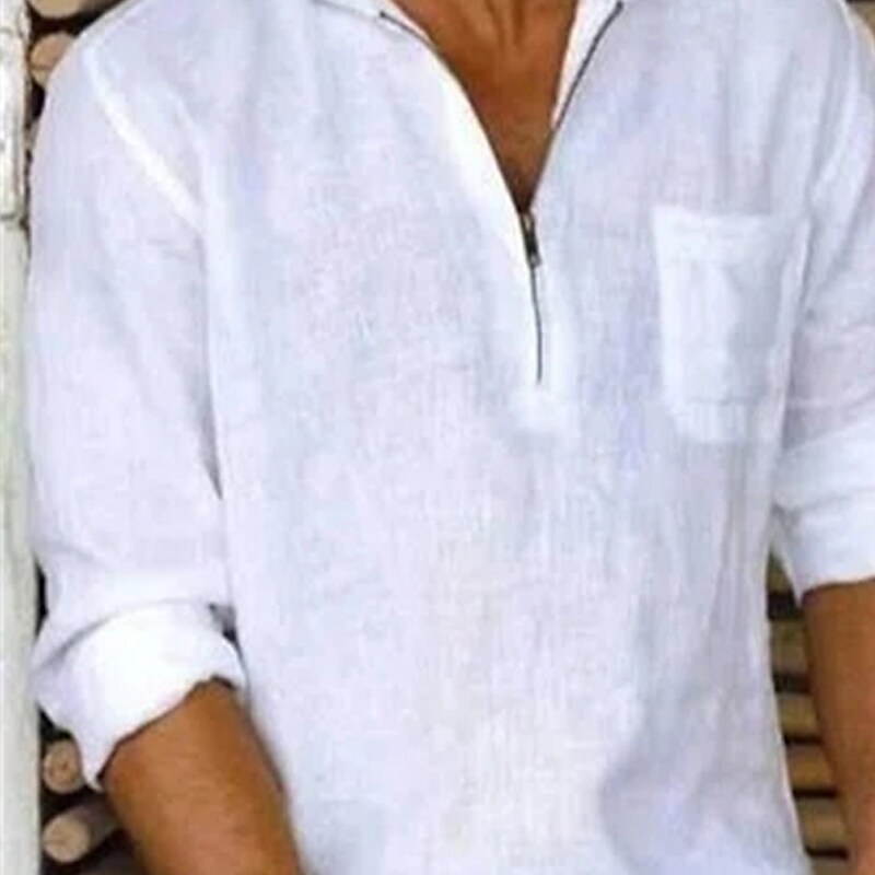 Men's Shirt Solid Color Turndown Street Casual Zipper Long Sleeve Tops Fashion Classic Comfortable Big and Tall White