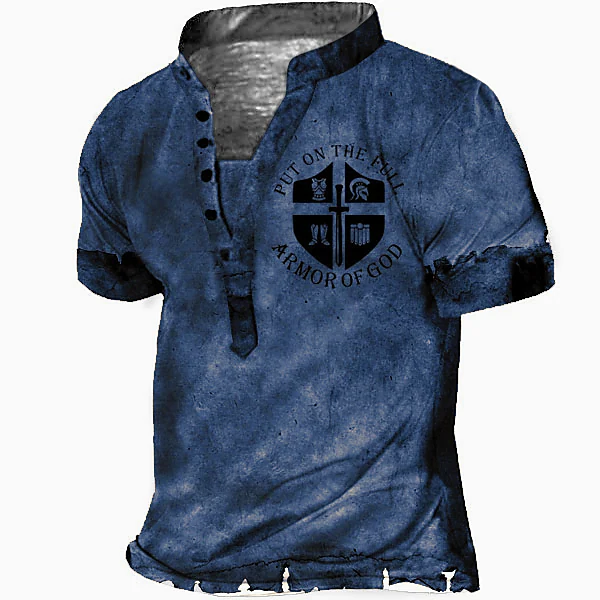 Men's Graphic Letter 3D Print Outdoor Casual Button-Down Short Sleeve Henley Shirt