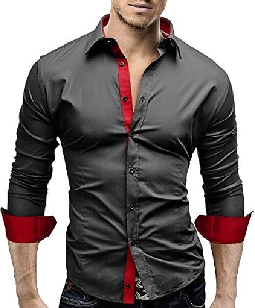 Men's Shirt Collar Long Sleeve Tops Streetwear Black And White Sapphire Navy/casual shirts