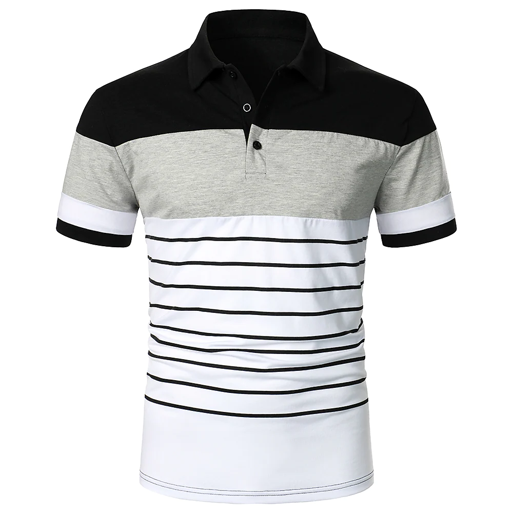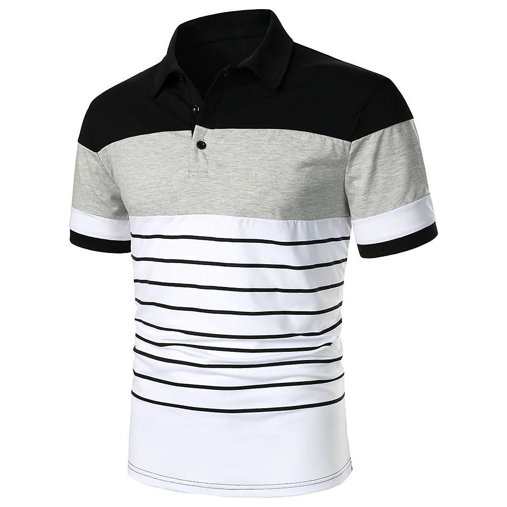 Men's Golf Shirt Dress Shirt Casual Shirt Shirt Print Curve Geometry Classic Collar Casual Daily Color Block Button-Down Short Sleeve Tops Color Block Casual Fashion Classic Black / White