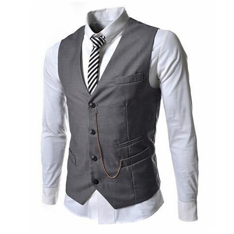 Men's Slim Fit Waistcoat Button Down Vest Solid Colored Cotton Suit Black / Light gray / Red - Shirt Collar / Sleeveless Suit Vest Business Casual Dress Waistcoat