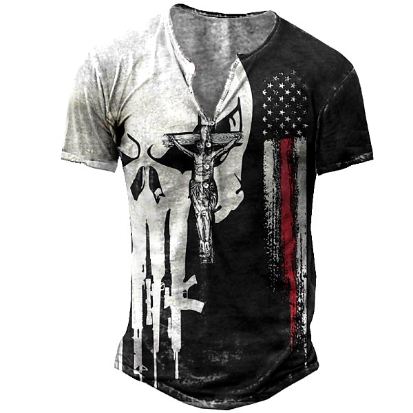 Men's Henley Shirt T shirt Tee 1950s Long Sleeve Graphic Patterned Skull Plus Size Henley Street Casual Button-Down Print Clothing Clothes Basic 1950s Casual Gray Army Green Khaki