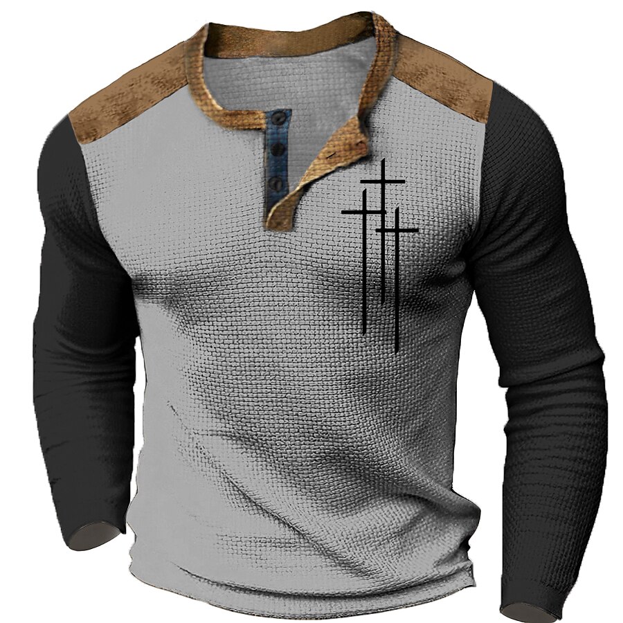 Graphic Color Block Faith Fashion Designer Casual Men's 3D Print Henley Shirt Waffle T-Shirt Sports Outdoor Holiday Festival T-shirt