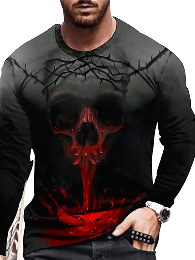 Men's Shirt Skull Graphic Prints Turndown Black Orange Outdoor Street Long Sleeve Print Clothing Apparel Fashion Streetwear Designer Casual