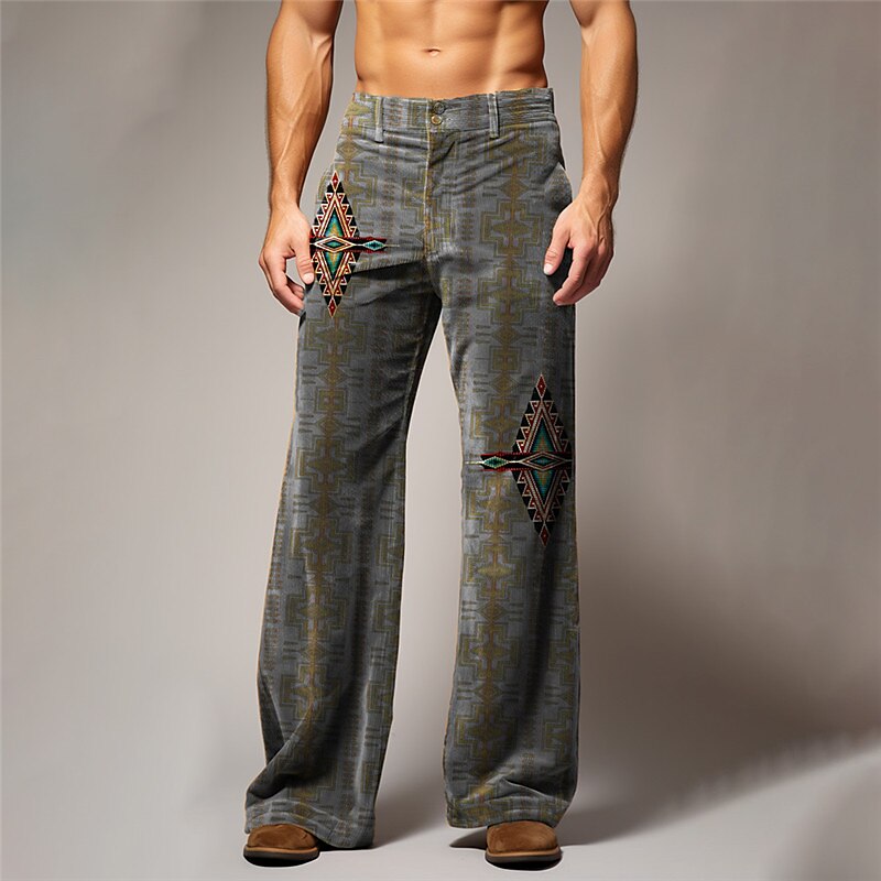 Tribal Geometry Bandana Print Vintage Casual Men's 3D Print Corduroy Pants Pants Trousers Outdoor Daily Wear Streetwear Polyester Brown Khaki Dark Gray S M L Medium Waist Elasticity Pants