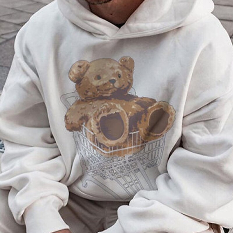 Men's Hoodie Pullover Hoodie Sweatshirt Graphic Patterned Bear Pocket Print Daily Holiday Going out Hot Stamping Casual Streetwear Hoodies Sweatshirts White