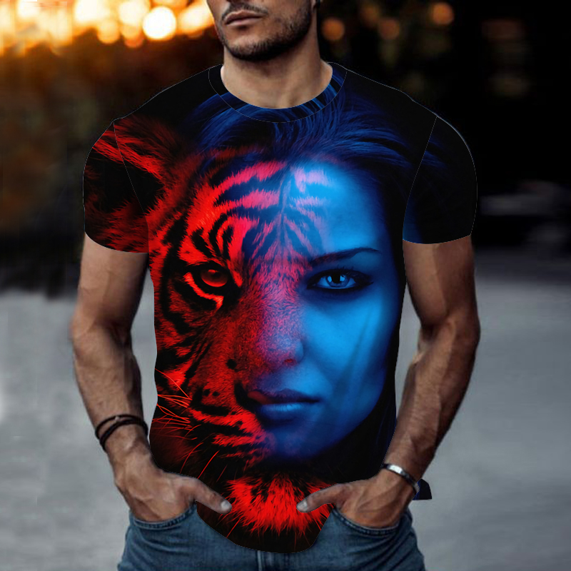 summer short-sleeved multicolor v-neck cotton street hipster loose print pullover t-shirt