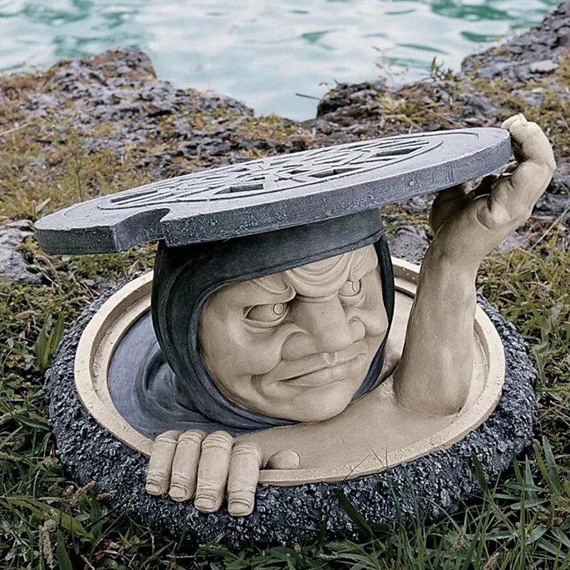 Halloween Manhole Cover Small Figure Resin Statue Sculpture Outdoor Figurines Natural Vivid Decoration Interesting Outdoor Terrace Art Ornaments for Garden Patio Lawn Yard Decorations