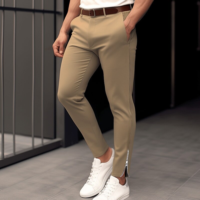 Men's Trousers Chinos Casual Pants Zipper Front Pocket Plain Comfort Breathable Business Casual Daily Fashion Basic Brown Khaki