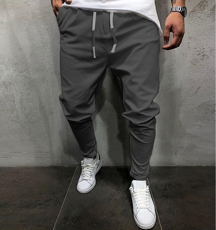 men's harem pants cropped trousers pockets drawstring elastic waist baggy Bloomers casual plain yoga trousers lightweight loose Solid Color Ankle-Length Pants