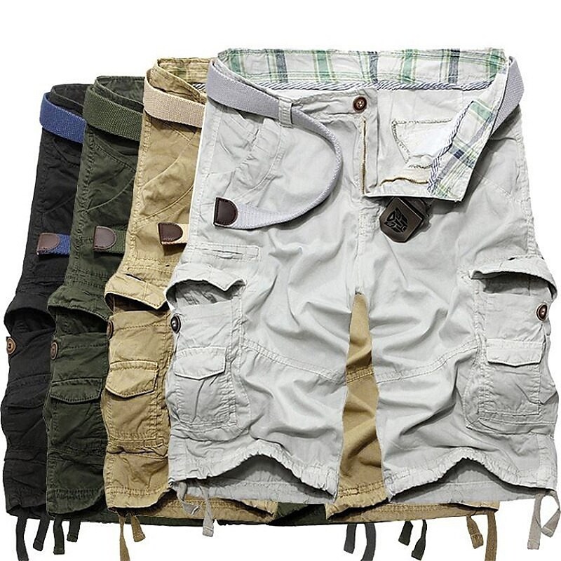 Men's Stylish Sporty Shorts Tactical Cargo Cargo Shorts Pocket Knee Length Pants Daily Sports Micro-elastic Solid Color Comfort Mid Waist ArmyGreen Black Khaki Light Grey S M L XL XXL