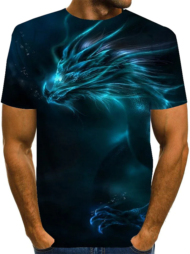 Men's T shirt Tee Animal Crew Neck Home Casual Print Short Sleeve Tops Casual Hip-Hop Muscle White Blue Light gray