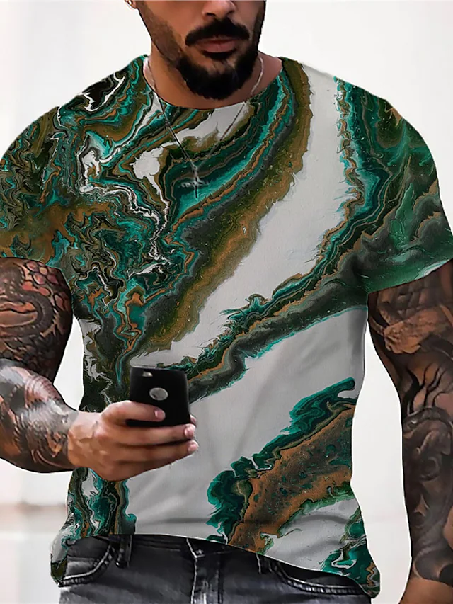 Men's T shirt 3D Print Graphic Letter Crew Neck Casual Daily Print Short Sleeve Tops Fashion Vintage Designer Big and Tall Black Gray Army Green