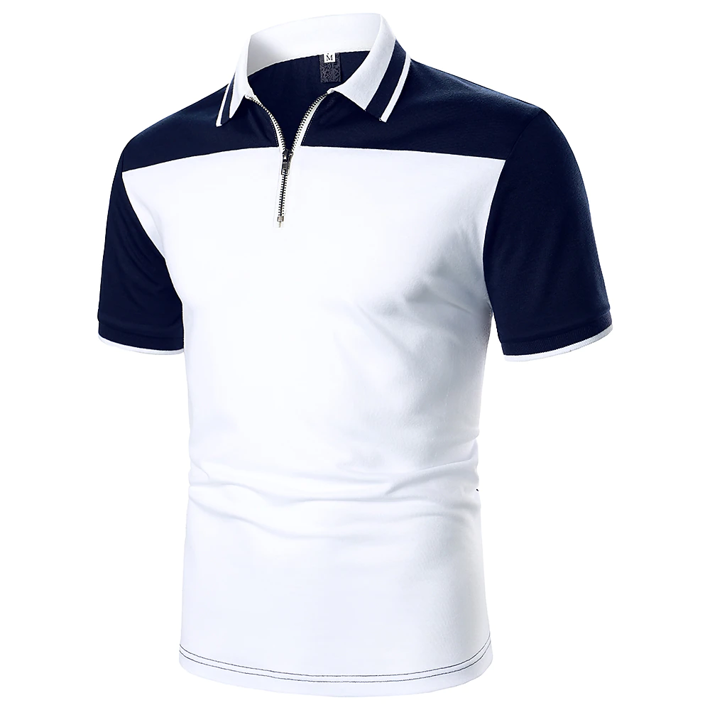 Men's Golf Shirt Dress Shirt Casual Shirt Shirt Print Geometry Button Down Collar Casual Leisure Sports Color Block Zipper Short Sleeve Tops Simple Color Block Casual Fashion White