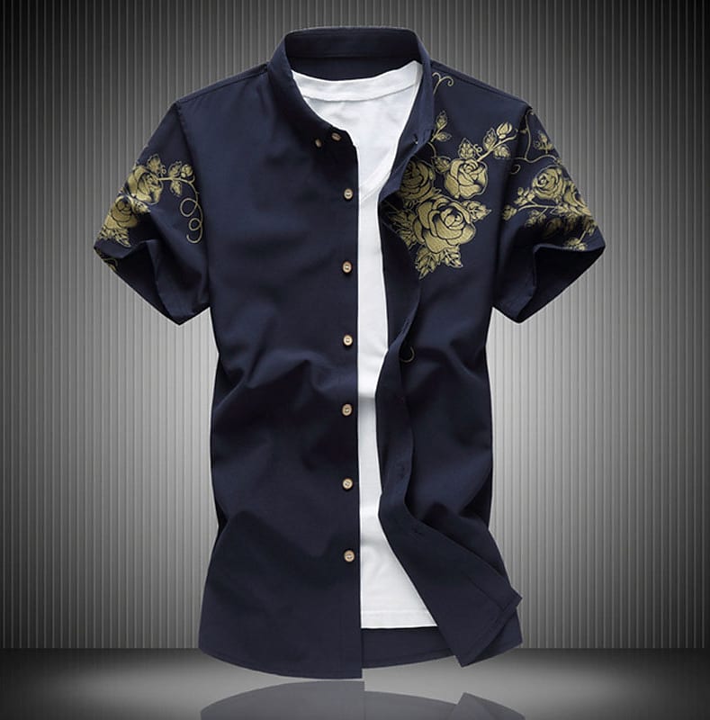 Men's Outdoor Beach Holiday Casual Fashion Breathable Comfortable Light Print Short Sleeve Shirt