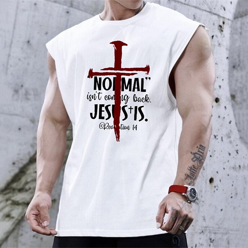 Men's Tee T shirt Tee Graphic Letter Plus Size Crew Neck Fitness Gym Short Sleeve Tops Muscle Sports White Black Blue / Summer