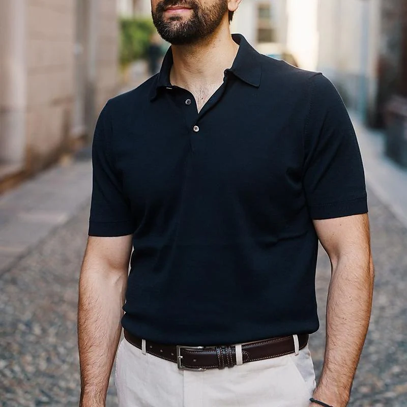 Men's Golf Shirt Dress Shirt Casual Shirt Holiday Geometry Classic Collar Casual Daily Color Block Button-Down Short Sleeve Tops Simple Color Block Casual Fashion Black Navy Blue