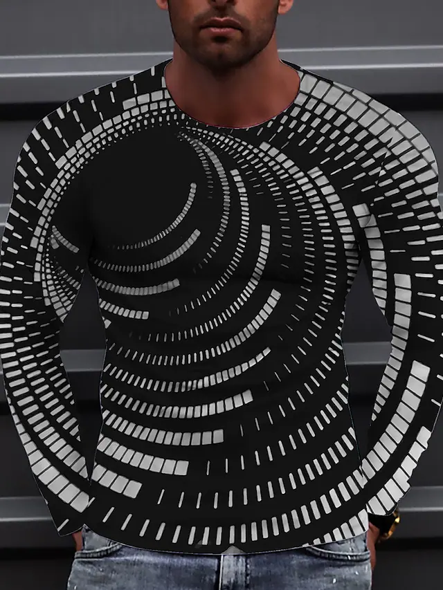 Men's T shirt Tee Optical Illusion Graphic Prints Crew Neck Green Blue Purple Yellow Wine 3D Print Outdoor Street Long Sleeve Print Clothing Apparel Basic Sports Designer Casual