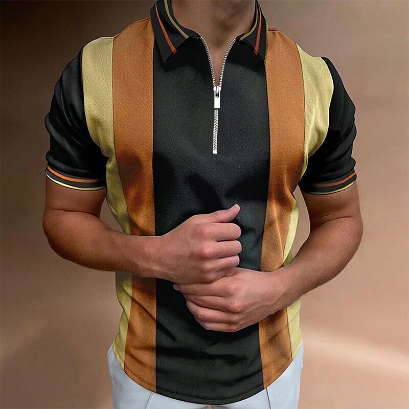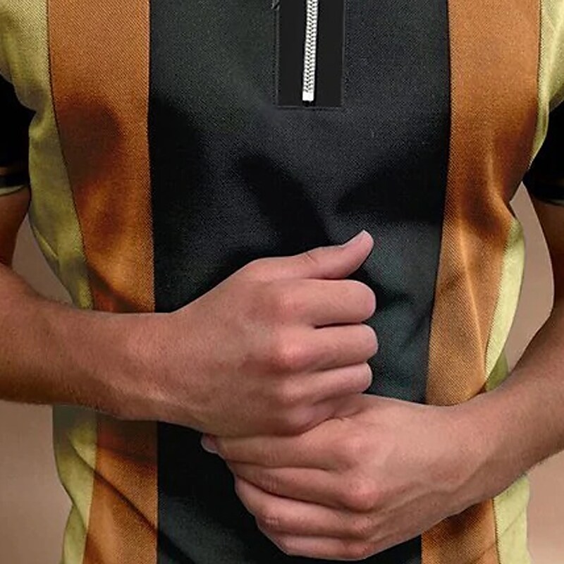 Men's Golf Shirt Hot Stamping Color Block Turndown Street Casual Zipper Print Short Sleeve Tops Fashion Classic Comfortable Big and Tall Orange / Summer