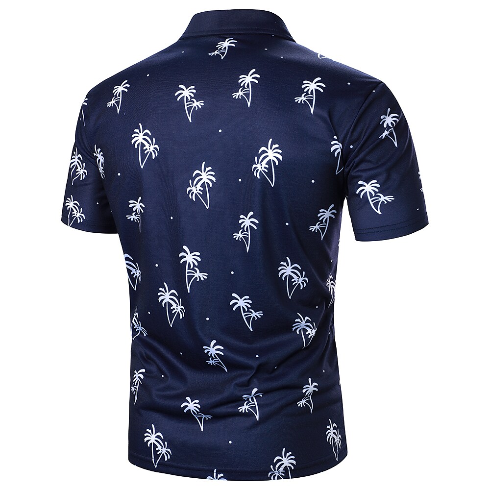 Men's Golf Shirt Dress Shirt Casual Shirt Shirt Print Plants Holiday Button Down Collar Casual Leisure Sports Color Block Button-Down Short Sleeve Tops Simple Color Block Casual Fashion Navy Blue