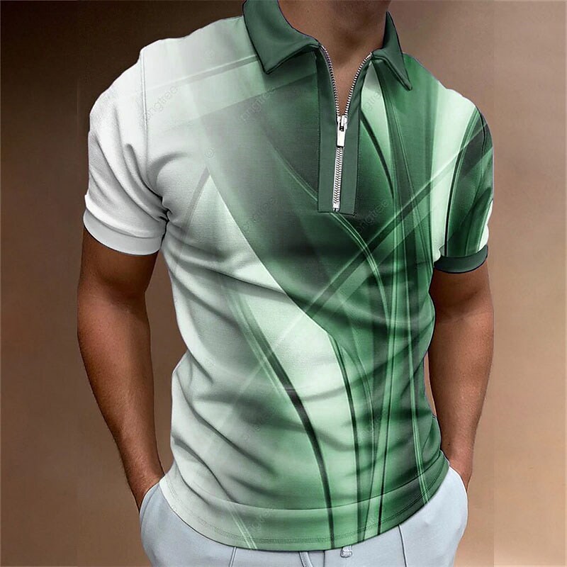 Men's Golf Shirt 3D Print Streamer Turndown Casual Daily Zipper Short Sleeve Tops Casual Fashion Comfortable Sports