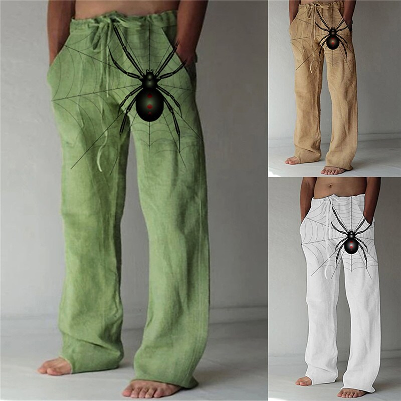 Men's Designer Fashion Straight Trousers 3D Print Elastic Drawstring Design Front Pocket Pants Casual Daily Graphic Prints Spider Comfort Soft Mid Waist Green White Khaki Dark Gray S M L XL XXL