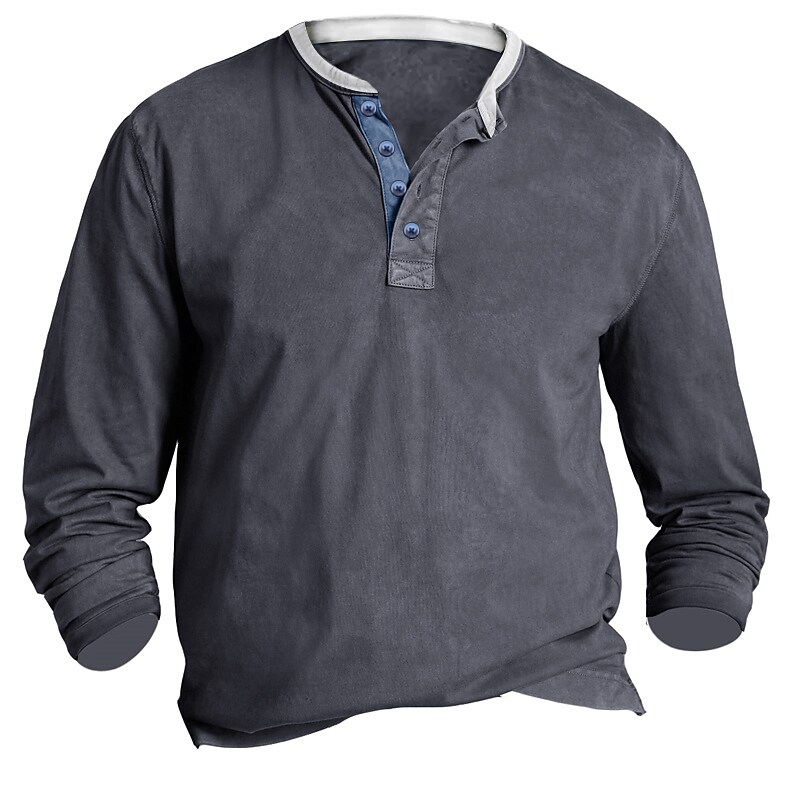 Men's Henley Shirt Graphic Henley Gray Casual Daily Long Sleeve Print Clothing Apparel Cool Casual