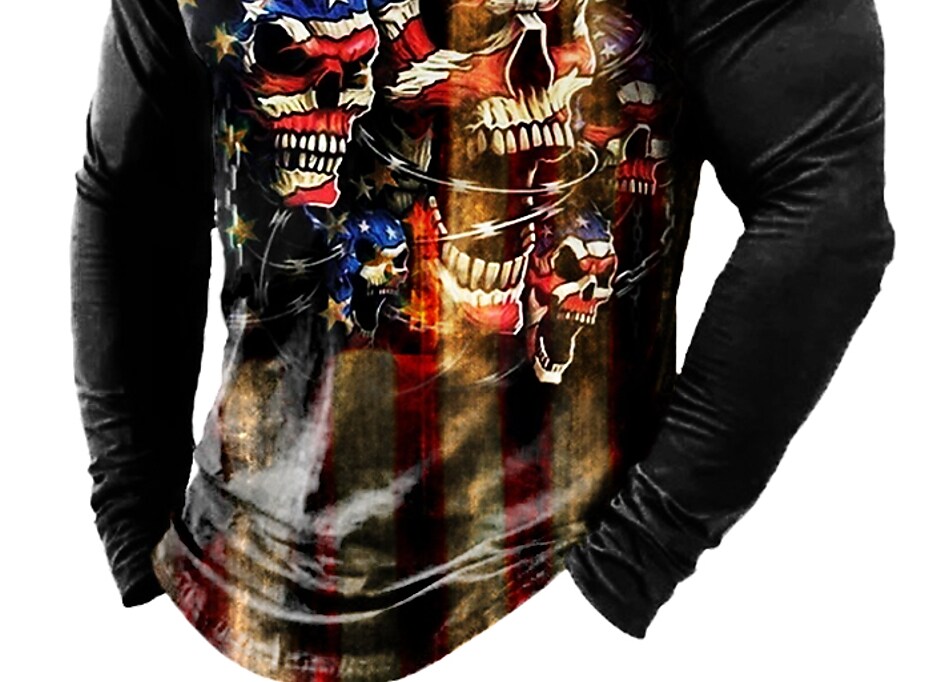 Men's Henley Shirt Skull Henley Black Casual Daily Long Sleeve Print Clothing Apparel Cool Casual