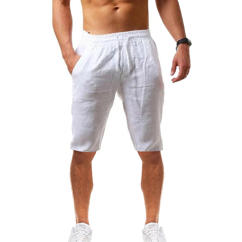 Men's Casual Cropped trousers Beach Pants Drawstring Pocket Elastic Waist Calf-Length Pants Sports Outdoor Solid Color Cotton Breathable Soft Mid Waist Green Black Blue khaki M L XL XXL XXXL