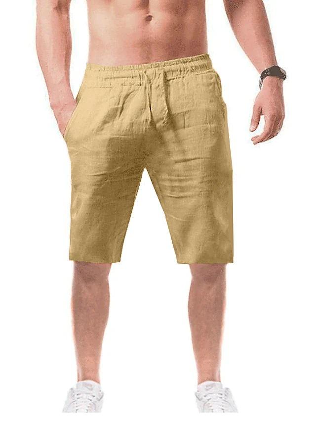 Men's Sporty Casual Shorts Bermuda shorts Drawstring Short Pants Daily Holiday Micro-elastic Solid Color Cotton Blend 100% Cotton Breathable Soft Mid Waist Green White Blue Beige S M L XL XXL / Beach