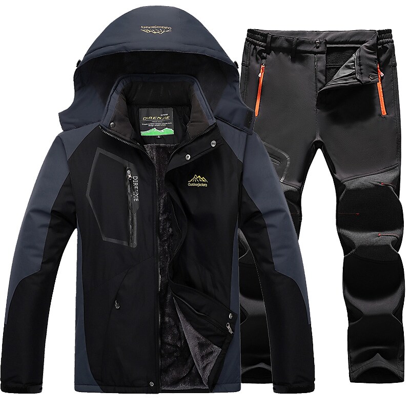 Men's Hiking Jacket with Pants Winter Outdoor Thermal Warm Waterproof Windproof Quick Dry Jacket Pants Trousers Clothing Suit Full Zip Skiing Camping Hunting Green / Black Red+Black / 2pcs