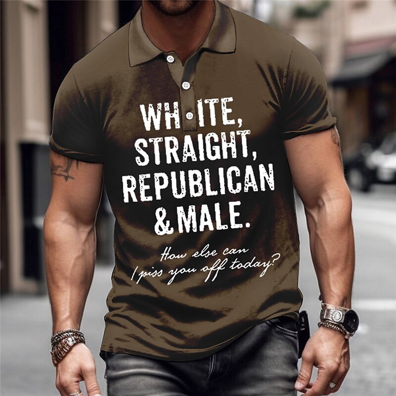 Men's Button Up Polos Lapel Polo Polo Shirt Golf Shirt Letter Graphic Prints Turndown Blue-Green White Blue Brown Green Outdoor Street Short Sleeves Print Clothing Apparel Sports Fashion Streetwear