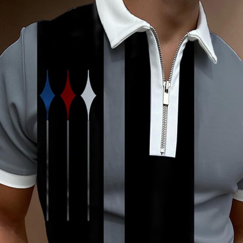 Men's Zip Polo Lapel Polo Polo Shirt Golf Shirt Graphic Prints Geometry Turndown Apricot White Blue Green Gray Outdoor Street Short Sleeves Zipper Print Clothing Apparel Fashion Designer Casual